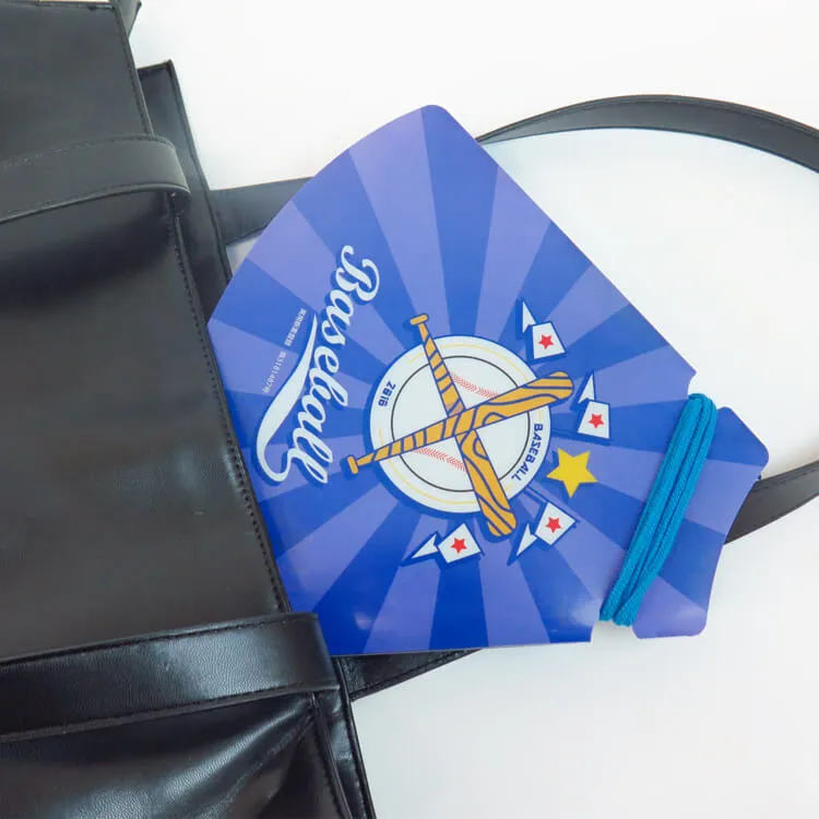 詳細 応援グッズの定番であるメガホンとうちわが一つになりました。 ぺったんこの時はうちわとして扇げ、持ち手を軽く押せば立体のメガホンになります。 使わない時は首から掛けておくことができます。