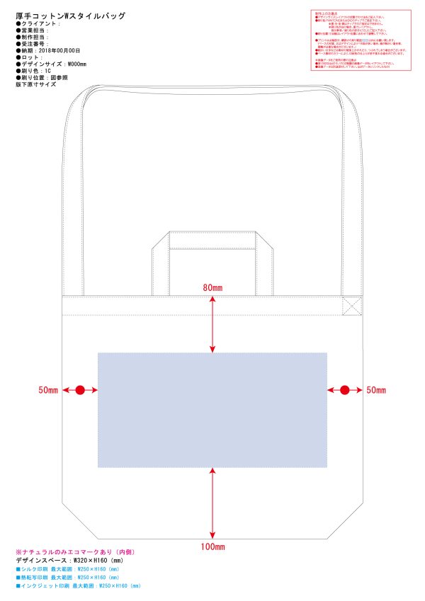 詳細オリジナル印刷ができる厚手コットンWスタイルバッグナチュラルを制作いたします。