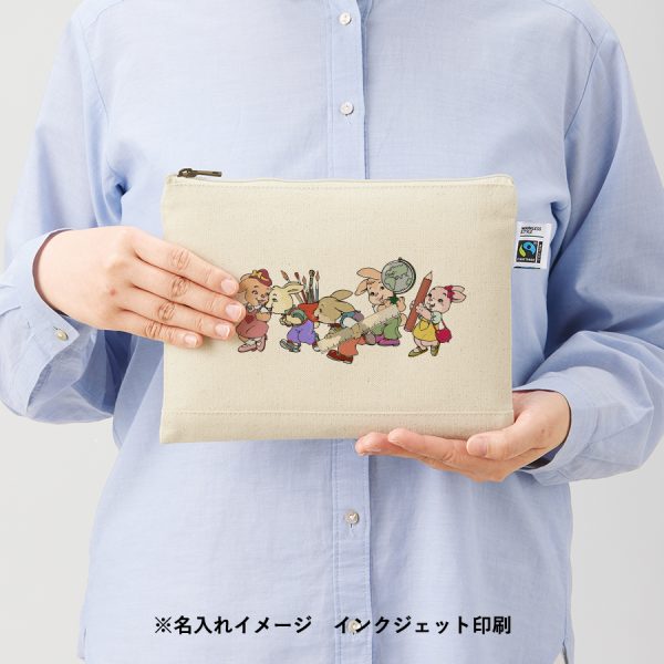 フェアトレードコットンキャンバスフラットポーチ(M) ナチュラル [フェアトレード認証商品]