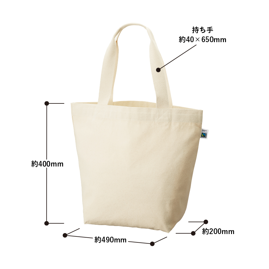 | 詳細 | フェアトレードコットンを使用したコットンキャンバスバッグです。 10オンス相当の厚みがあり丈夫なため、お買い物バッグなどでも使用していただけます。 持ち手は二つ折りで縫製されており肩にフィットする形となってます。 サイズは他にSサイズ・Mサイズも展開しております。 国際フェアトレード認証ラベル付きのアイテムとなっており、 SDGsやサスティナブルへの取り組みで企業価値を高められます。 |