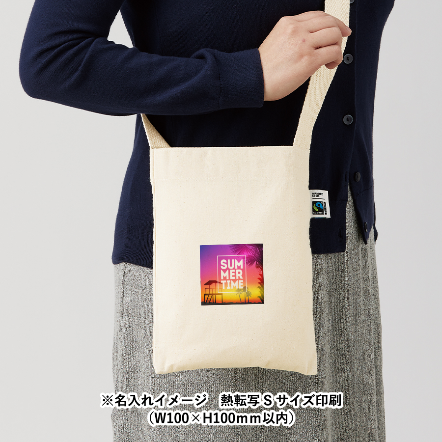 | 詳細 | フェアトレードコットンを使用した縦長のベーシックなシンプルサコッシュです。 5オンスの厚みがあり透け感の心配もなくしっかりとした生地です。 縦長の形状はスマホなどの小物を入れるのにぴったりで近所にお出かけの際やフェスなどで大活躍します。 ショルダーテープにもフェアトレード認証のオーガニックコットンを使用しております。 国際フェアトレード認証ラベル付きのアイテムとなっており、 SDGsやサスティナブルへの取り組みで企業価値を高められます。 |