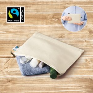 フェアトレードコットンキャンバスファスナーポーチ(M) ナチュラル [フェアトレード認証商品]